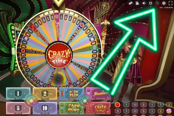 | Crazy Time | Large bonus wheel with colored zones; re-spins and doubles extend the round | Pick entry and follow prompts as wheel continues | High swing potential with long chains |